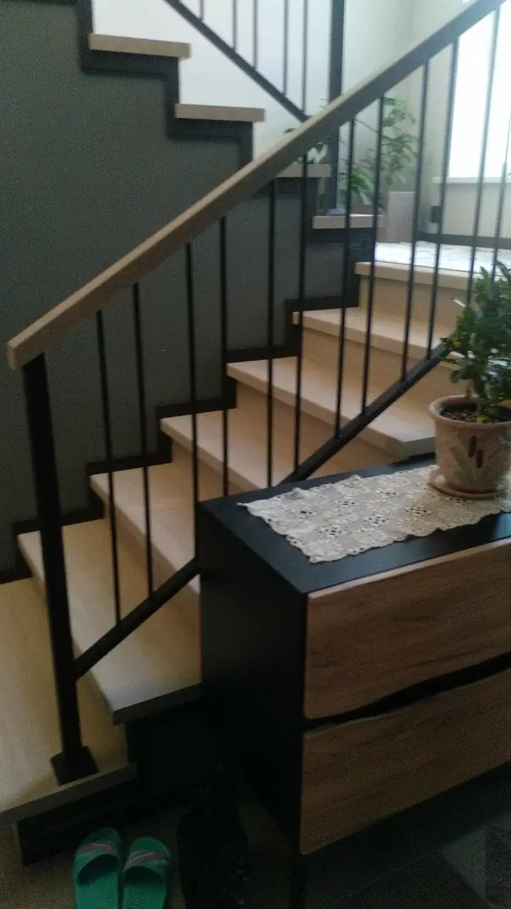 Комбинированная лестница открытого типа на пилообразном косоуре в дереве